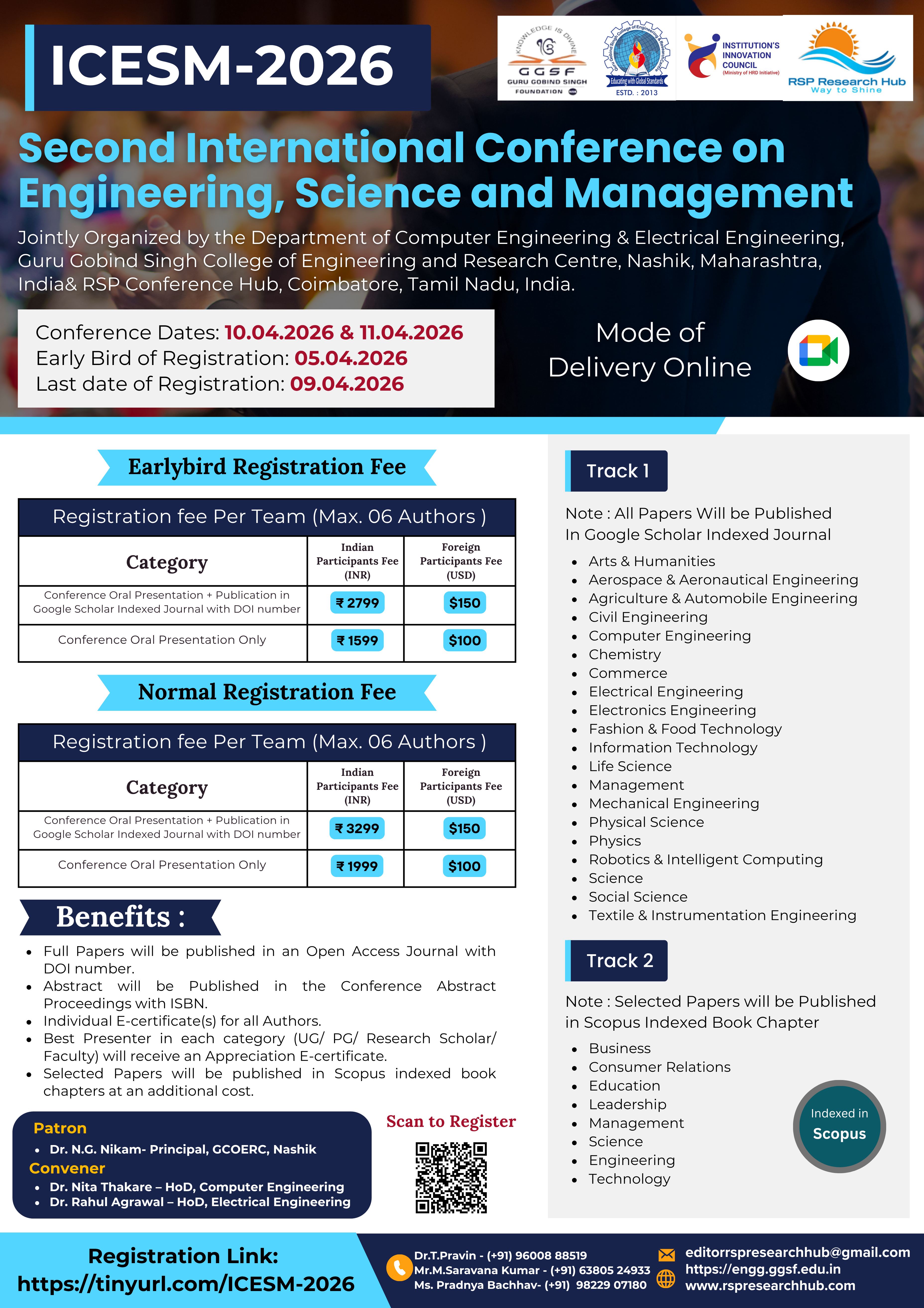 Jointly Organized by Computer Engineering & Electrical Engineering, Guru Gobind Singh College of Engineering & Research Centre, Nashik, India & RSP Research Hub with Eclearnix Edtech Private Limited, Coimbatore, Tamil Nadu, India.